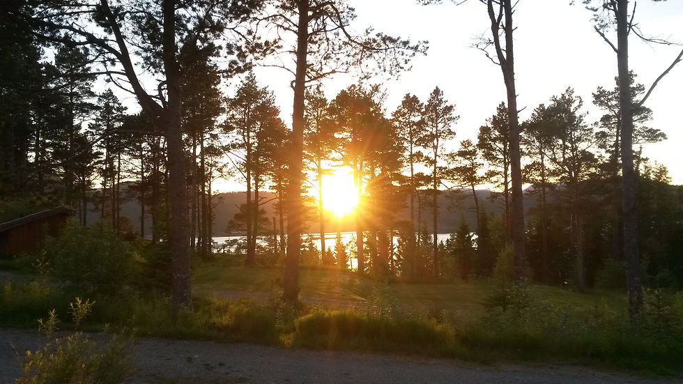 Vi våknet til regnvær, men det ga seg raskt og innen vi hadde pakket og vasket oss ut av hytta var det lett skydekke med solgløtt. En stund etter vi forlot campingen så vi en oter som svømte i vannkanten, tøft. Turen fra Brønnøysund til ferja (Vennesund - Holm) gikk raskt unna. Rett etter ferjeleiet på Holm stod det 4 elger i åkeren og tittet på oss. Første elgene vi har sett hittil på turen. Senere på dagen så vi også en elgku med kalv ved veikanten.