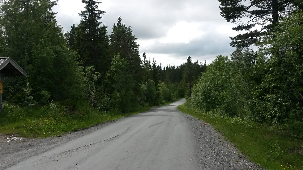 Startet med å finne en hensiktsmessig vei ut av Trondheim for å unngå E6. Det gikk greit og etterhvert ble det litt flyt på det en stund. Så skulle vi over "fjellet" på FV470. Den vil vi ikke anbefale, fordi det var våt grusvei som sugde kraften ut av beina, den tok "aldri" slutt!